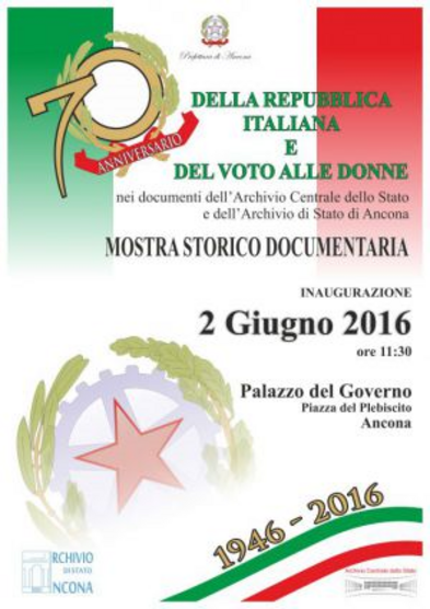 Mostra storico-documentaria attraverso la testimonianza dei documenti conservati all’Archivio Centrale dello Stato e all’Archivio di Stato di Ancona, organizzata in collaborazione con la Prefettura di Ancona.