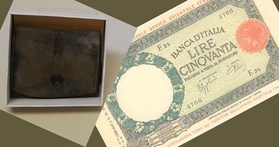 Il 15 aprile del 1938 Enrico Cecchi si reca in un negozio di alimentari per acquistare 100 g di lonza. Si offre di pagare con biglietto da £50, ma il negoziante sospetta possa trattarsi di un biglietto falso e non lo accetta. Cecchi se lo riprende dicendo che lo avrebbe restituito a chi glielo aveva dato e acquista solo due fettine di salame che paga con il poco contante che ha in tasca. Si reca poi in una pasticceria, dove acquista una torta da £10,50 che paga con la banconota falsa. In quest’occasione la negoziante non si accorge della contraffazione e consegna £39,50 di resto. Fermato il giorno seguente dai carabinieri racconta tre versioni diverse rispetto alla provenienza della banconota falsa e dichiara di averla sempre custodita nel suo portamonete che viene sequestrato. Peccato solo che quel portamonete era (ed è) davvero tanto piccolo e una banconota da 50 Lire non ci sarebbe mai entrata!
