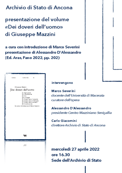 Presentazione del volume "Dei doveri dell’uomo» di Giuseppe Mazzini", a cura e con introduzione di Marco Severini.
