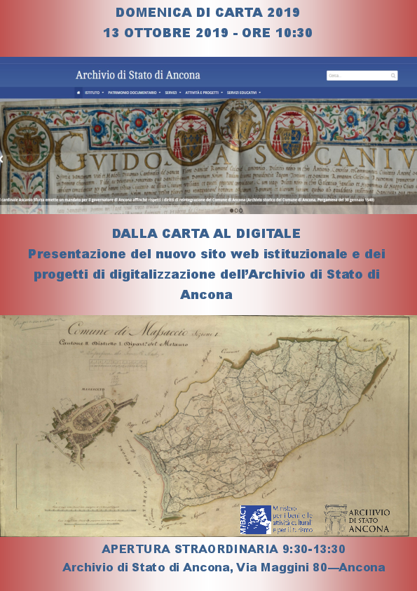 ore 10:30: incontro "Dalla carta al digitale": presentazione del nuovo sito web istituzionale e dei progetti di digitalizzazione dell’Archivio di Stato di Ancona.