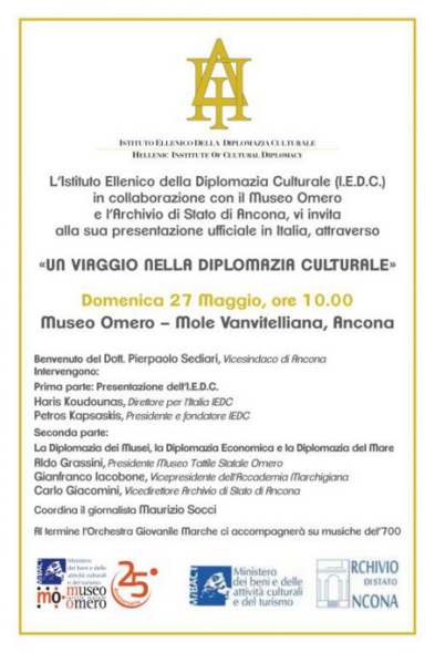 Presentazione dell'Istituto Ellenico della Diplomazione Culturale (I.E.D.C.) in collaborazione con il Museo Omero e l'Archivio di Stato di Ancona.